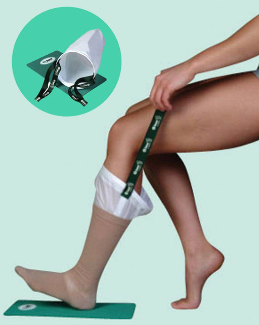 The practical and protective way to apply and remove your compression stockings. Not made with natural rubber latex.