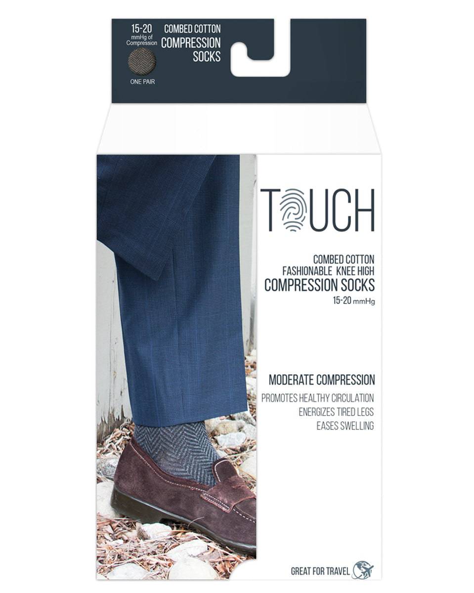 Touch Kniestrümpfe mit Fischgrätenmuster für Herren, 20-30 mmHg