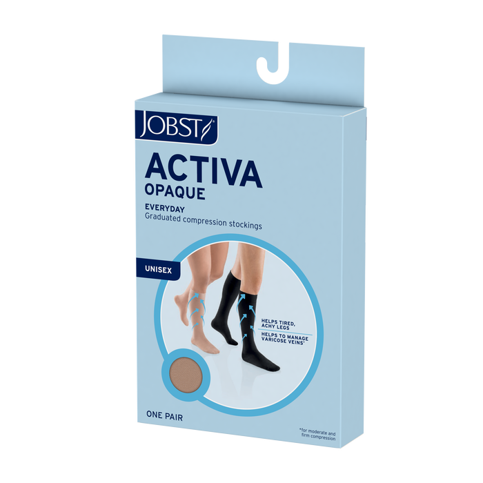Aide à dissimuler les petites imperfections tout en étant doux pour la peau. La gestion efficace de l'humidité et la facilité d'enfilage font de ce produit un choix optimal pour un bas confortable au quotidien. Les bas de compression opaques JOBST® ACTIVA sont conçus avec une compression graduée pour aider à améliorer la circulation - avec la plus grande quantité de pression au niveau de la cheville et une compression moindre appliquée progressivement vers le haut de la chaussette ou du bas. Les produits JOBST® ACTIVA aident à gérer les varices, à soutenir la circulation et à dynamiser les jambes.