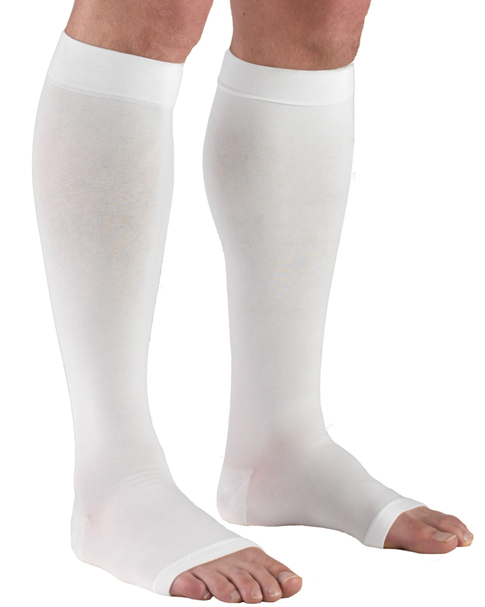 L'efficacité de qualité chirurgicale rencontre le confort et la mobilité des pieds ouverts avec les bas de contention à bout ouvert de qualité chirurgicale SECOND SKIN de 30 à 40 mmHg. Ces bas de contention à haute compression ont été conçus pour les personnes souffrant de thrombose veineuse profonde et d'insuffisance veineuse chronique. Esthétique opaque familière pour dissimuler les imperfections disgracieuses et bande supérieure élastique sécurisée.