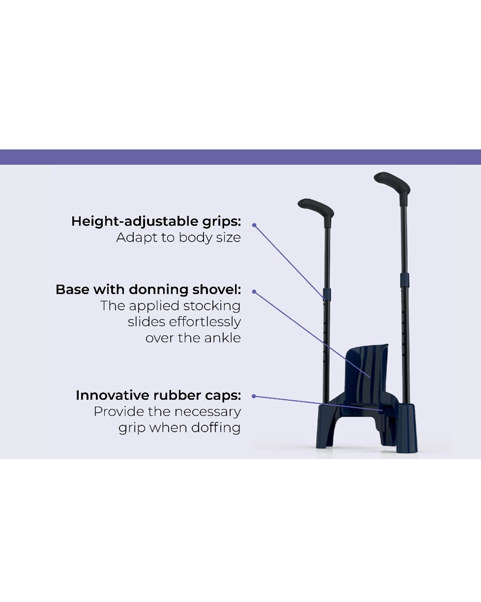 • Extended longevity of compression stockings due to gentle donning and doffing allowing them to retain their therapeutic compression for longer;