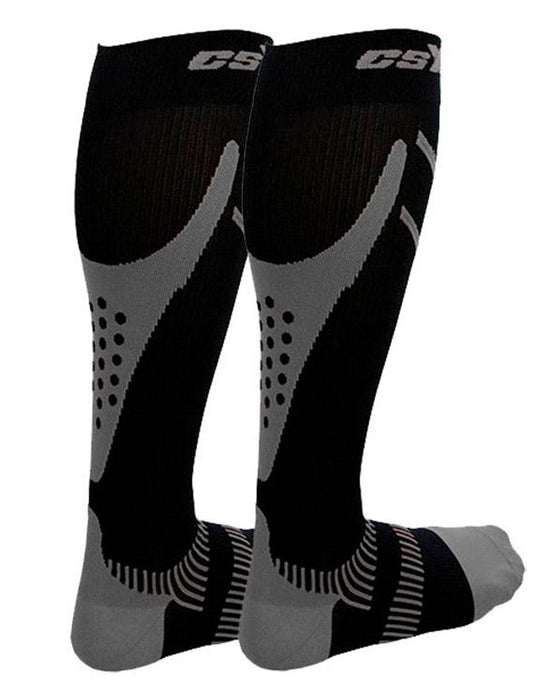 CSX X200-GB Compression Sport Socks use 15-20 mmHg compression, and are designed to give athletes and active individuals the decisive edge in performance, injury reduction and recovery. Built with the greatest support at the ankle that reduces gradually up the leg, they work to reduce the diameter of the superficial veins in the lower leg and thus help improve blood flow. Improved flow can help protect, energize, and renew tired muscles.