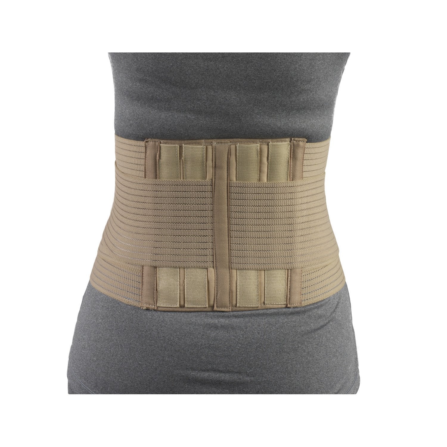 The OTC 2892 lumbosacral support is made from the finest quality beige elastic materials. It effectively stabilizes the ligaments, tendons and muscles of the lower back and offers relief from pain and discomfort. The encircling uplift panel provides additional support to the abdomen and relieves pressure over the lower back. Flexible boning in the back panel provides additional support and stability.