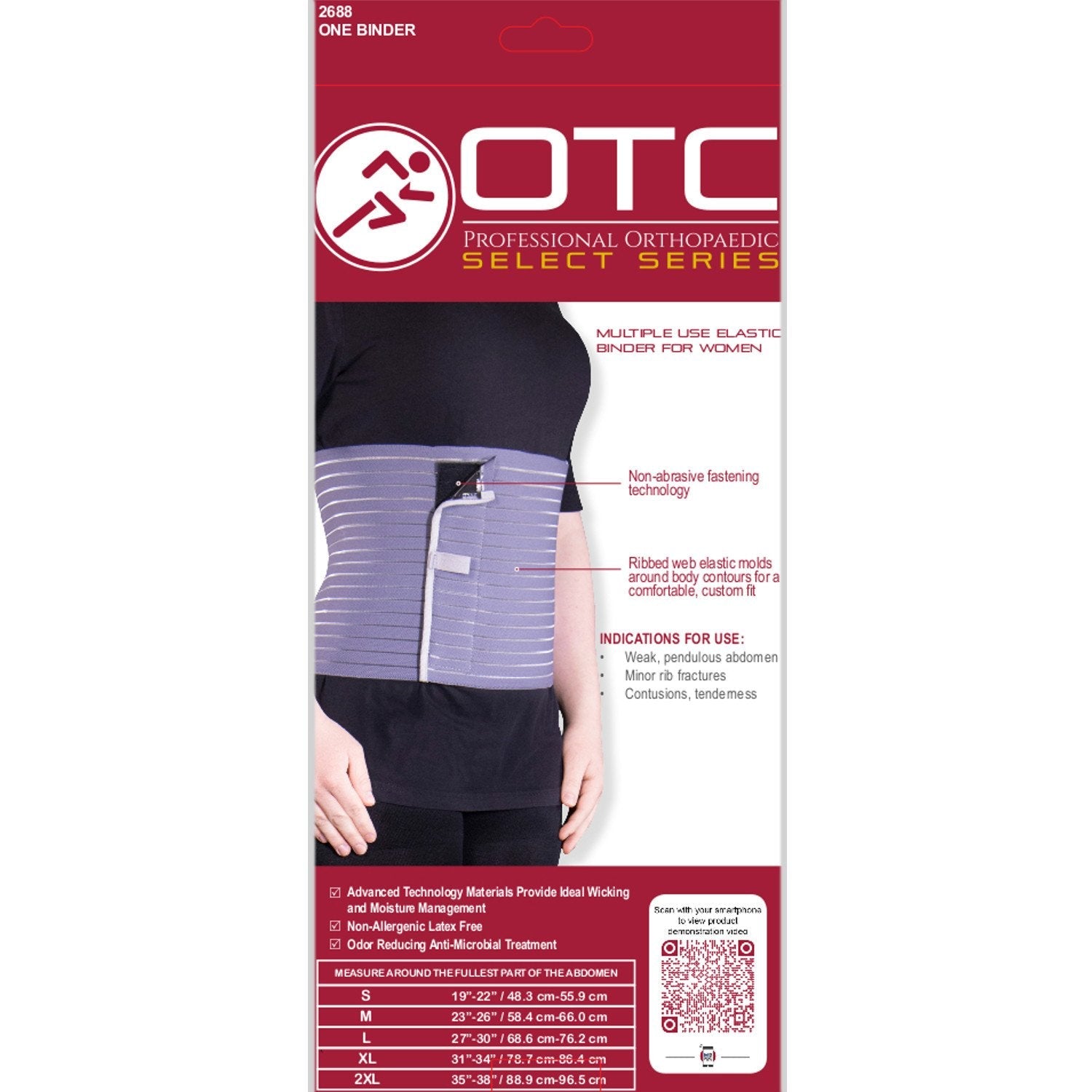 The OTC Select 2688 lightweight elastic binder has a variety of applications. Its most common use is as an abdominal binder for post-surgical dressings. It is effective in supporting abdominal contents when there has been a loss of muscle tone.