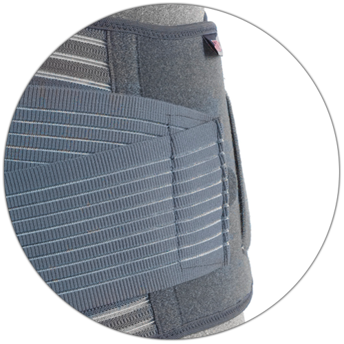 • 10” back panel with flexible stays covers lower back area for maximum therapeutic benefit