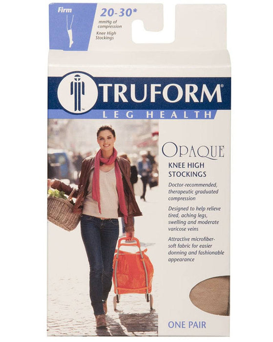 Truform Opaque resemble high fashion hosiery yet feature graduated compression technology - very soft for the most comfortable stocking in its compression class. The "easy-on, easy-off" construction is lightweight and highly effective in helping restore leg health. Fashionable look and soft texture appeals to today's active, fashion conscious woman - excellent for business or casual wear.